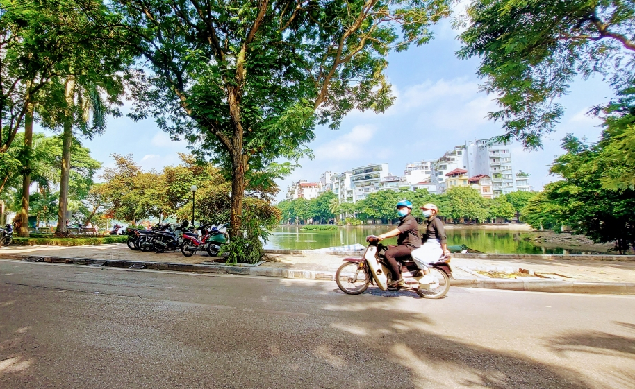 | Nước ngập tại đường Quang Trung. Ảnh: LP |