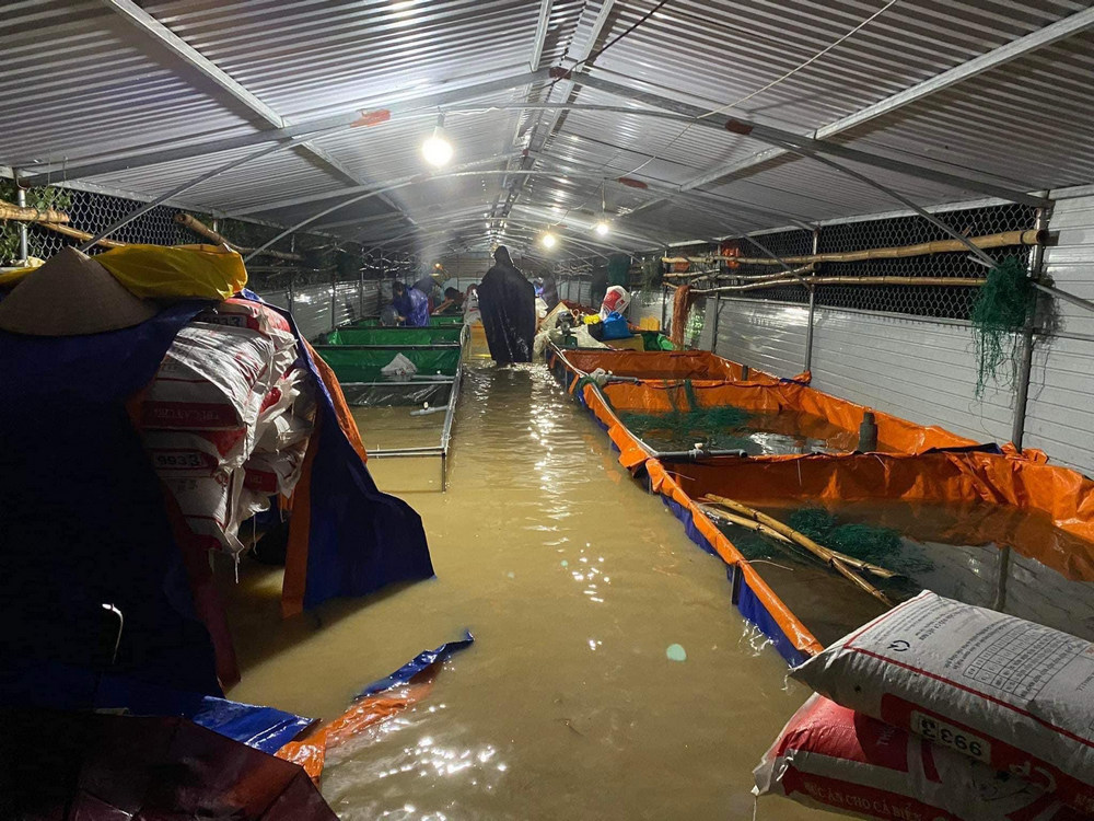 | Nhiều diện tích nuôi trồng thủy sản bị ngập |