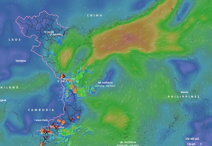 Vùng biển phía Tây Nam của khu vực Bắc Biển Đông (bao gồm cả vùng biển quần đảo Hoàng Sa) sóng biển cao 2,0-4,0m.