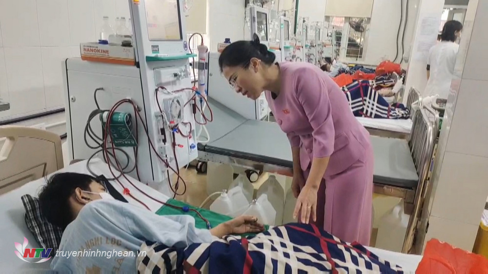 | Đại tá Đoàn Xuân Bường, Phó Chính uỷ Quân khu tặng quà cho những bệnh nhân nặng đang điều trị tại bệnh viện. |