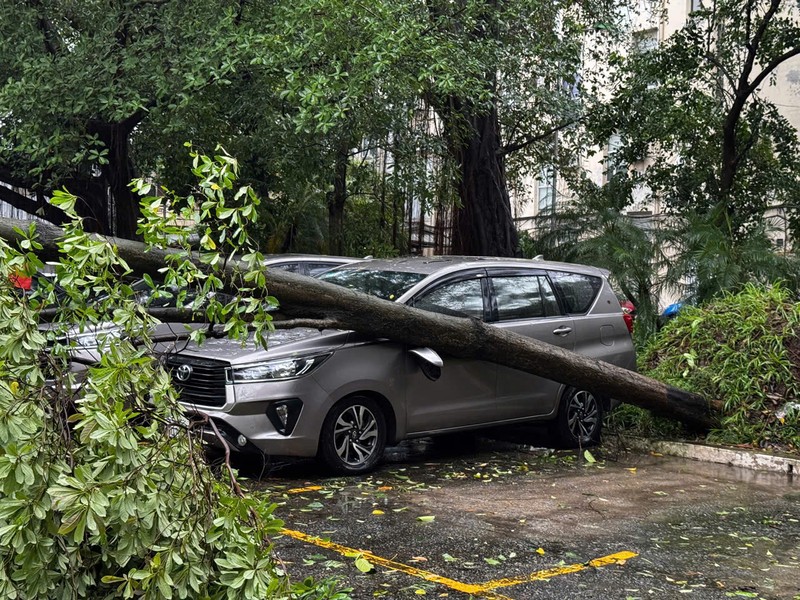 | Cây xanh bật gốc, cột điện đổ chắn ngang đường, khiến giao thông tê liệt ở nhiều tuyến phố. |