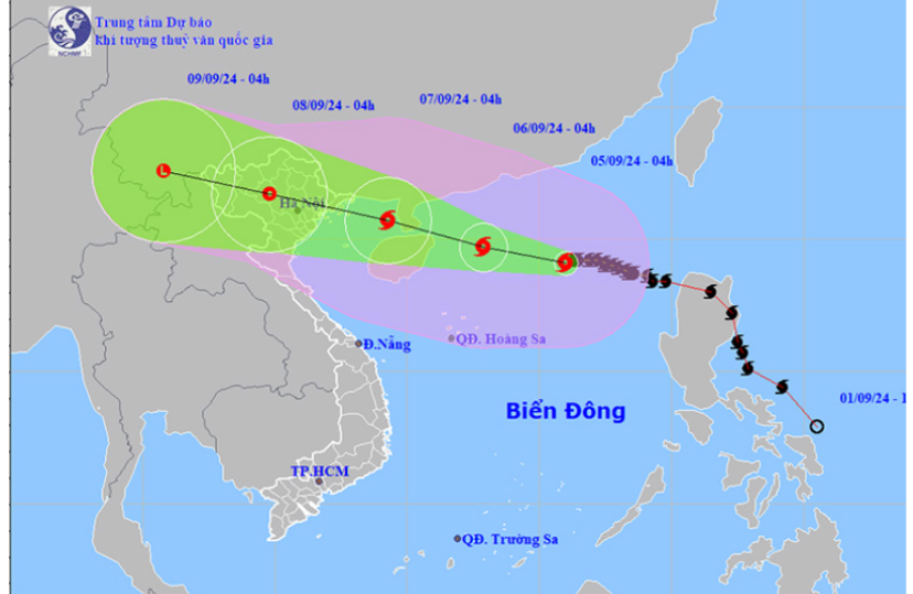 Theo Trung tâm Dự báo Khí tượng thủy văn Quốc gia, lúc 10 giờ, ngày 5/9 vị trí tâm bão ở vào khoảng 19,1 độ Vĩ Bắc; 115,5 độ Kinh Đông, trên vùng biển phía Bắc khu vực Bắc Biển Đông cách đảo Hải Nam (Trung Quốc) khoảng 490km về phía Đông. Sức gió mạnh nhất vùng gần tâm bão mạnh cấp 16 (184- 201km/h), giật trên cấp 17, di chuyển theo hướng Tây, tốc độ khoảng 10km/h.