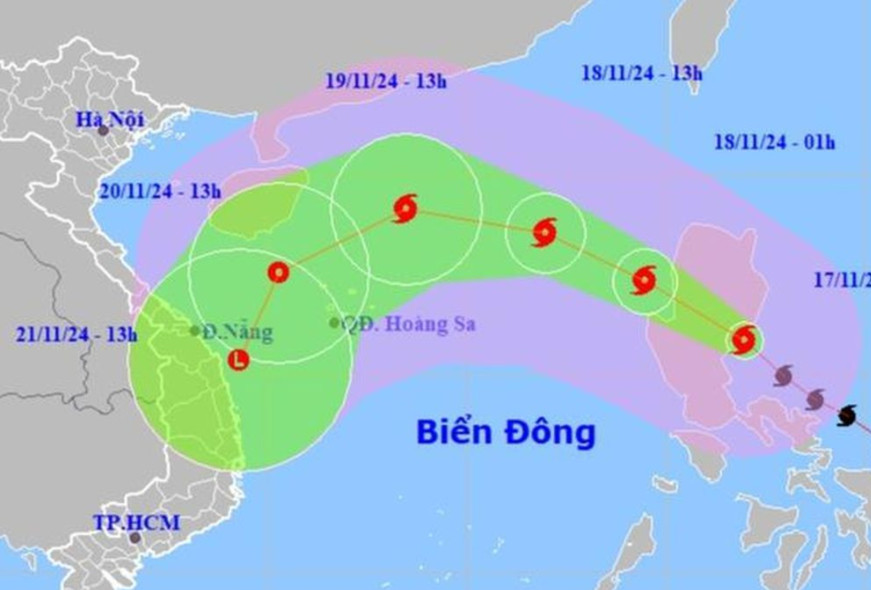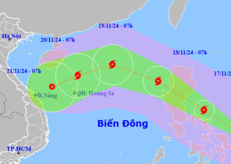 | Chiều tối nay (19/11) bão số 9 đã suy yếu thành áp thấp nhiệt đới. Ảnh: Trung tâm dự báo KTTV Quốc gia |