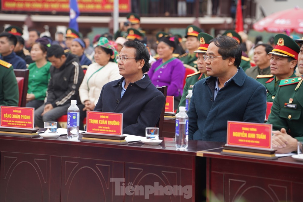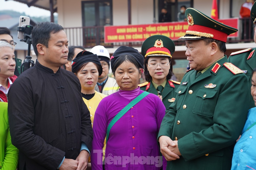 | Bàn giao những ngôi nhà mới đến người dân Làng Nủ, Thượng tướng Hoàng Xuân Chiến - Thứ trưởng Bộ Quốc phòng chia sẻ những đau thương, mất mát mà đồng bào vùng lũ Lào Cai trải qua. Thượng tướng Hoàng Xuân Chiến mong người dân vượt qua nỗi đau thương và mất mát để tiếp tục cuộc sống, tiếp tục cố gắng hướng về tương lai. |