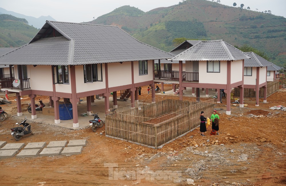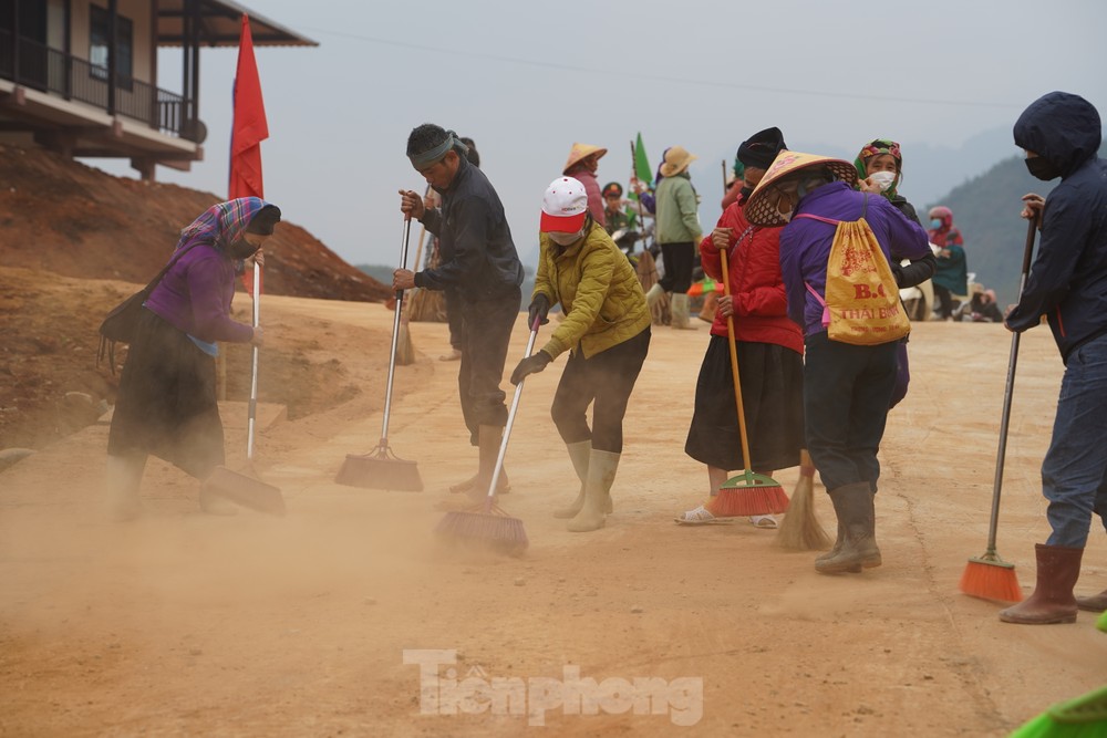 | Người dân Làng Nủ dọn đường, nhà cửa, chăm sóc vườn hoa tại nơi ở mới. |