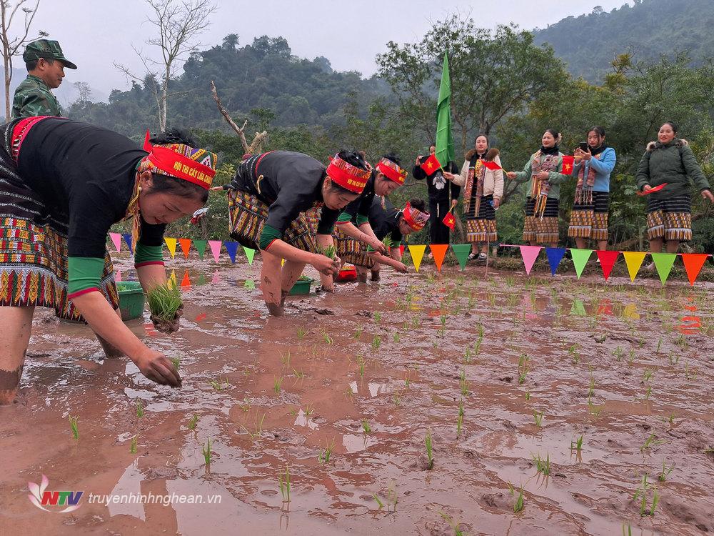 Tham gia hội thi cấy lúa năm nay có 4 đội thi, mỗi đội có 7 người gồm 5 nữ và 1 cán bộ đồn Biên phòng Môn Sơn, 1 dân quân địa phương đến từ các bản trên địa bàn xã Môn Sơn.