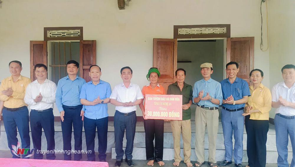 | Ban Tuyên giáo và Dân vận Tỉnh ủy Nghệ An trao hỗ trợ hộ dân ở xã Châu Thành, huyện Quỳ Hợp 30 triệu đồng để sửa chữa nhà. |