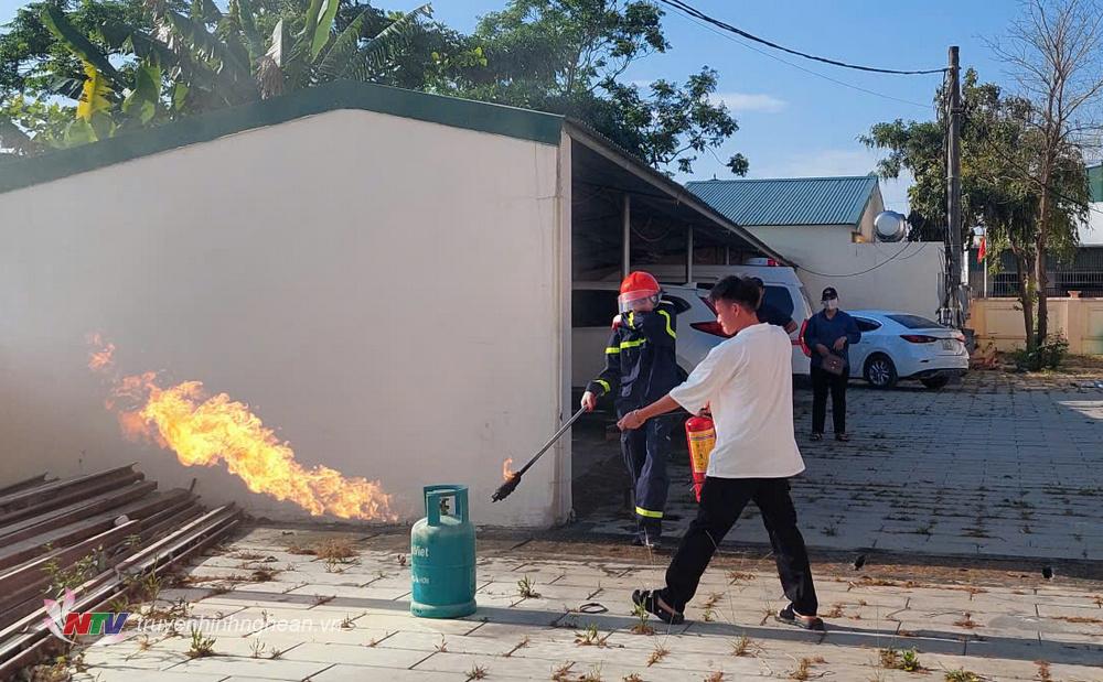 | Thực hành sử dụng bình chữa cháy để dập tắt đám cháy. |