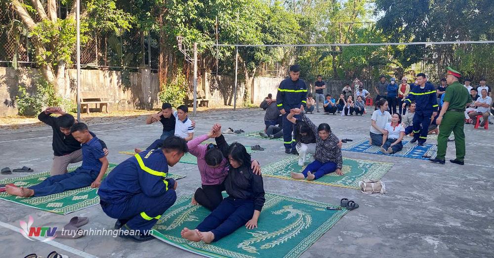 Chiều cùng ngày các học viên được thực hành các kỹ thuật PCCC & CNCH như: Thao tác sử dụng bình chữa cháy để dập tắt đám cháy; Thực hành cứu hộ cứu nạn như: Sơ cấp cứu người bị nạn, dìu người bị nạn ra khỏi khu vực cháy, hô hấp nhân tạo, ép tim ngoài lồng ngực…
