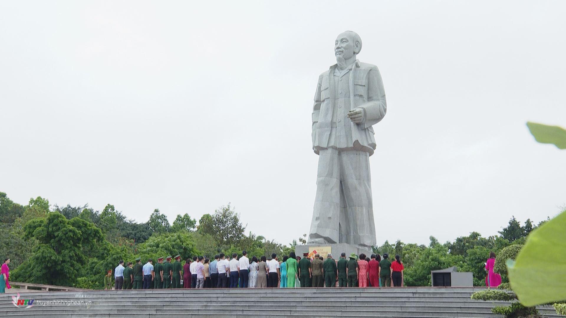 | Các đại biểu dâng hoa tưởng niệm Chủ tịch Hồ Chí Minh tại quảng trường mang tên Người |