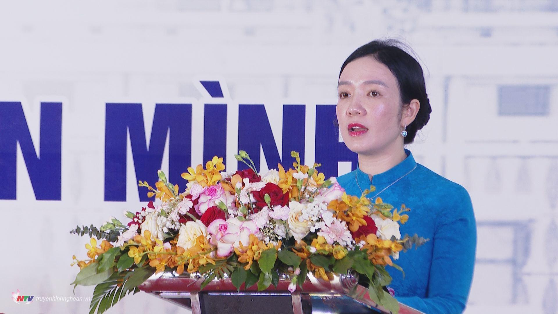 | Đồng chí Trần Thị Mỹ Hạnh - Giám đốc Sở Văn hóa -Thể thao và Du lịch phát biểu khai mạc trưng bày. |