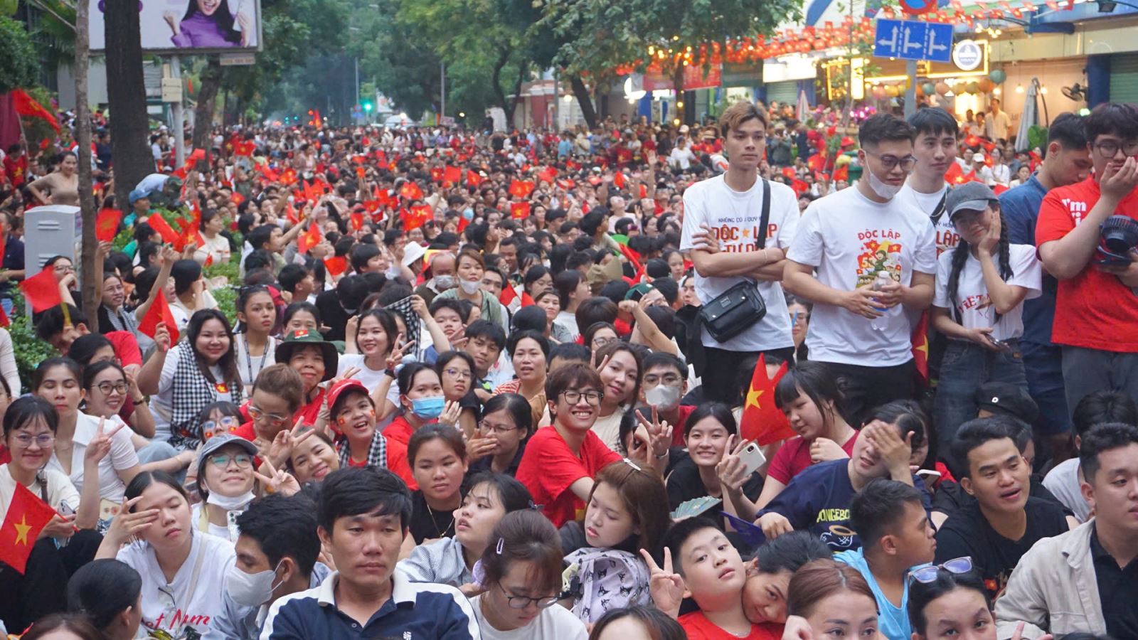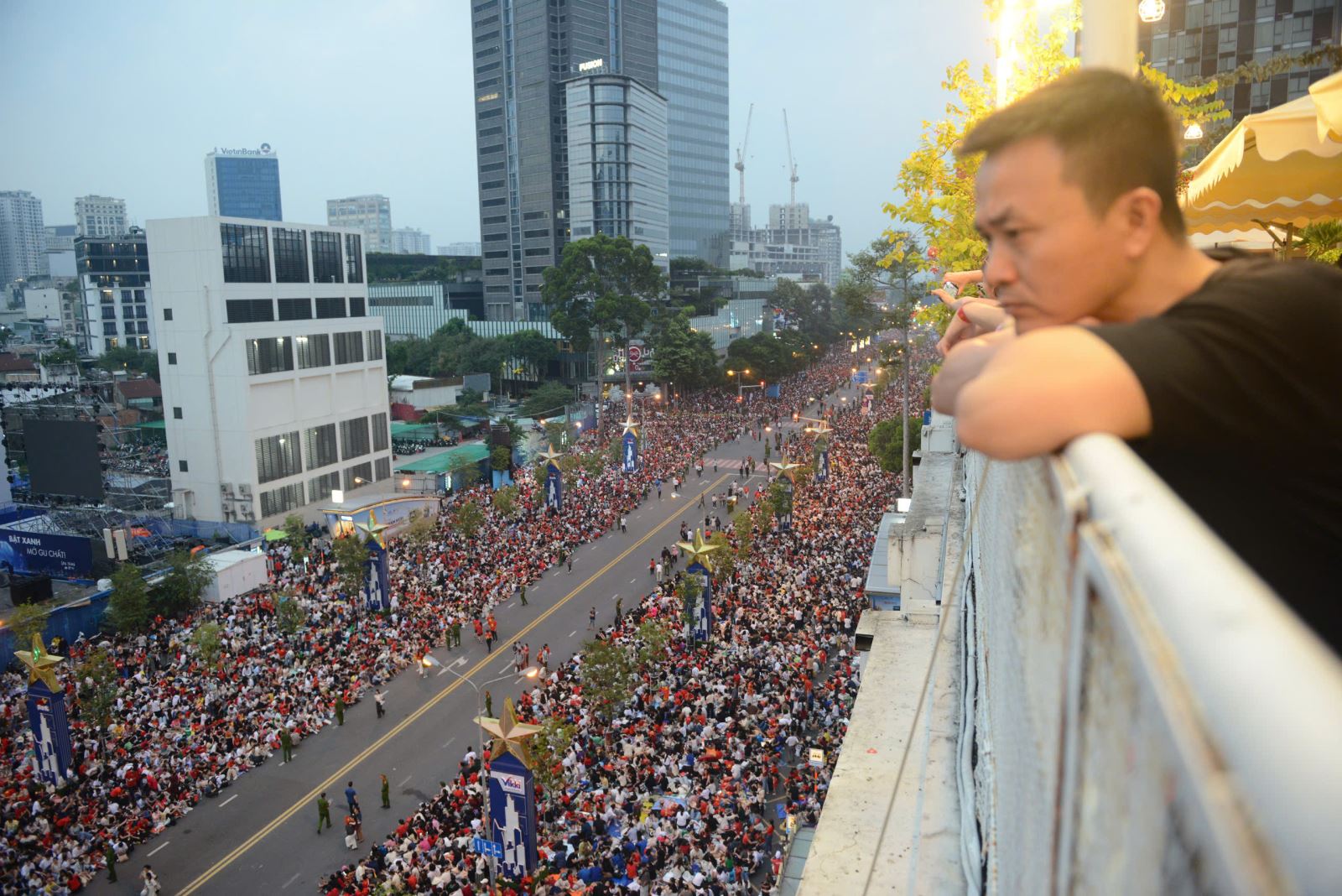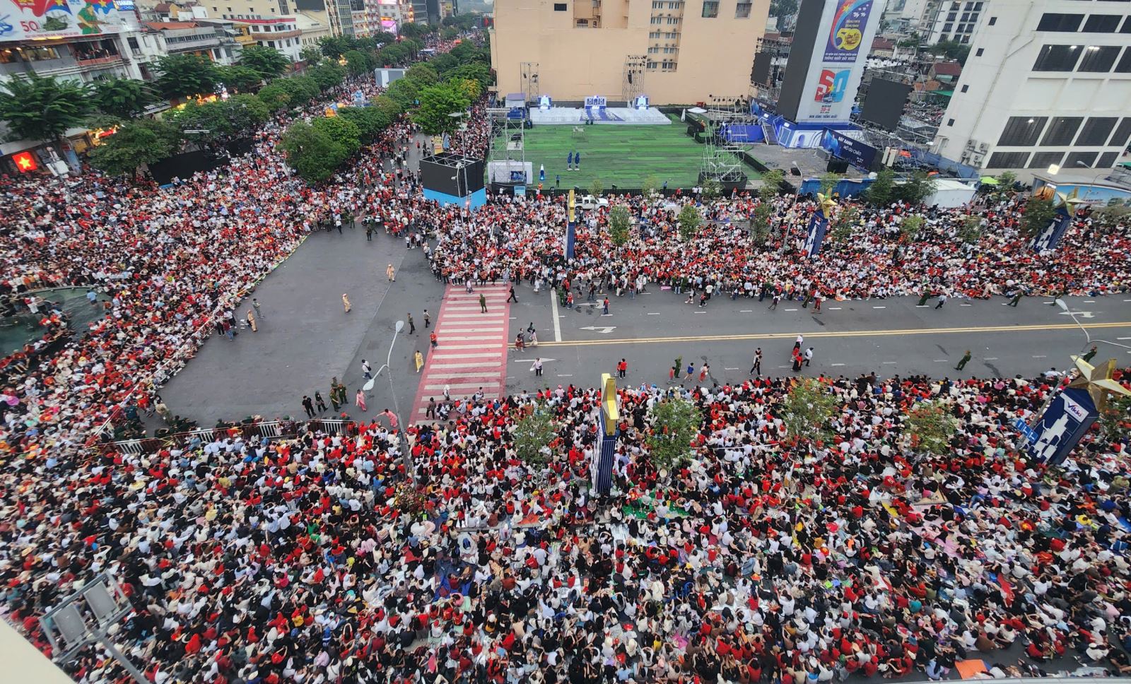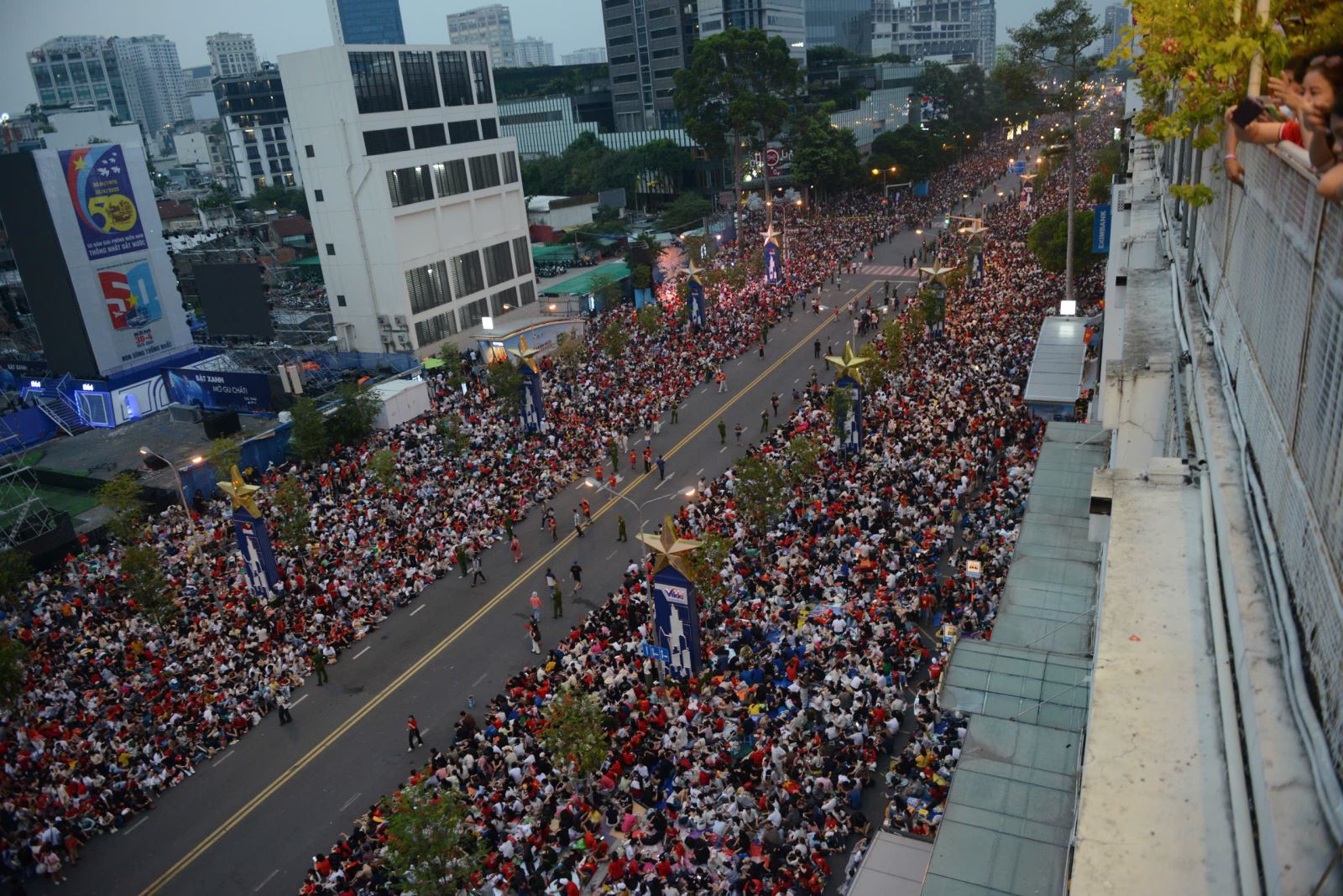 | Lượng người tập trung đông đúc trên đường Nguyễn Huệ - khu vực trước Tượng đài Bác để chờ xem lễ diễu binh, diễu hành. |