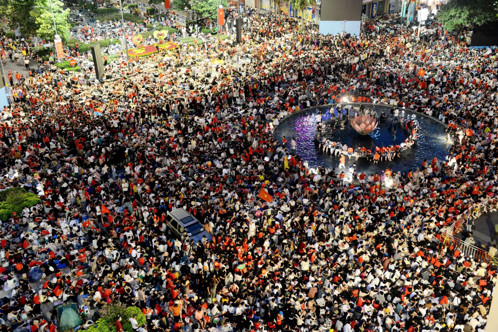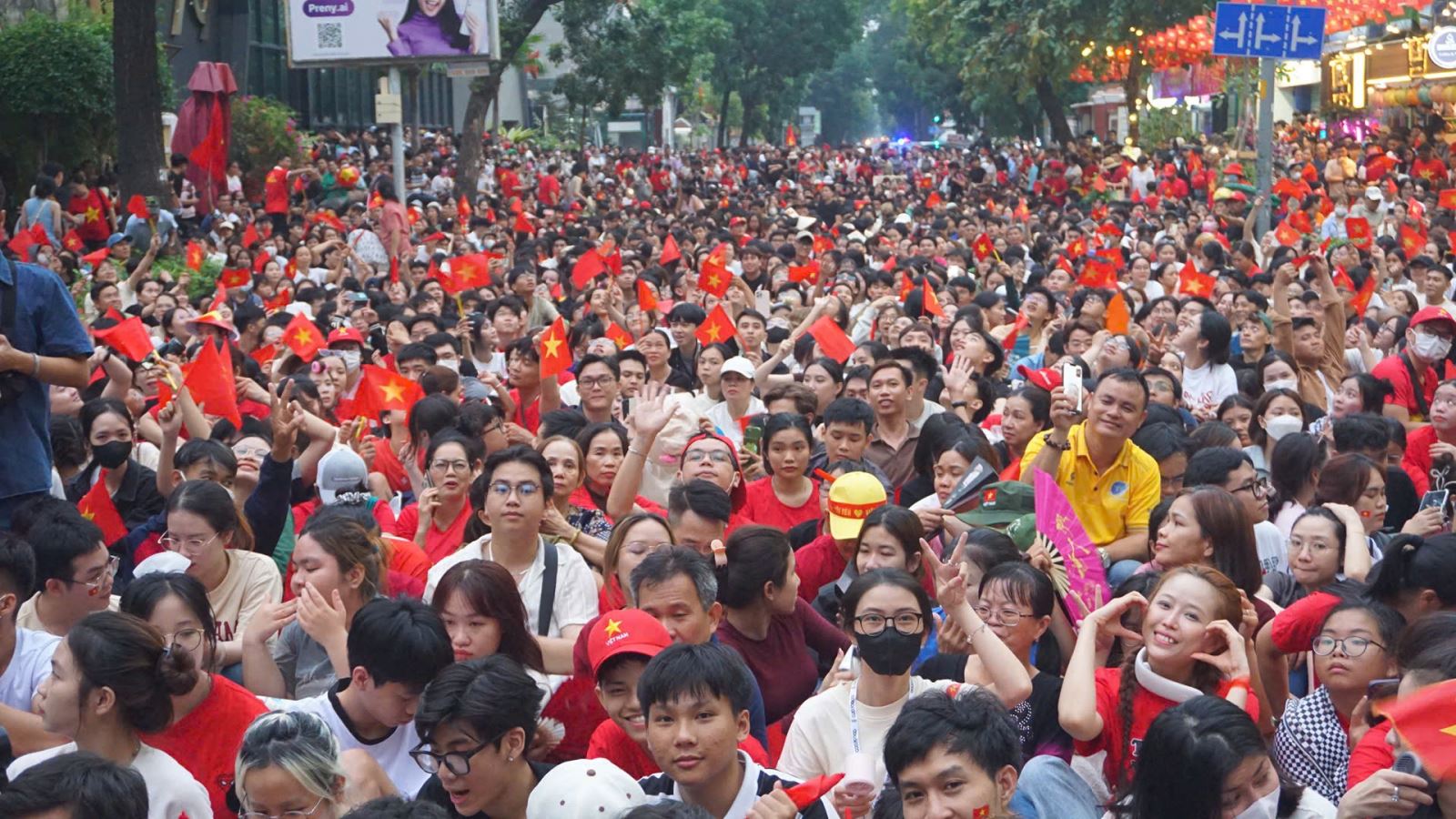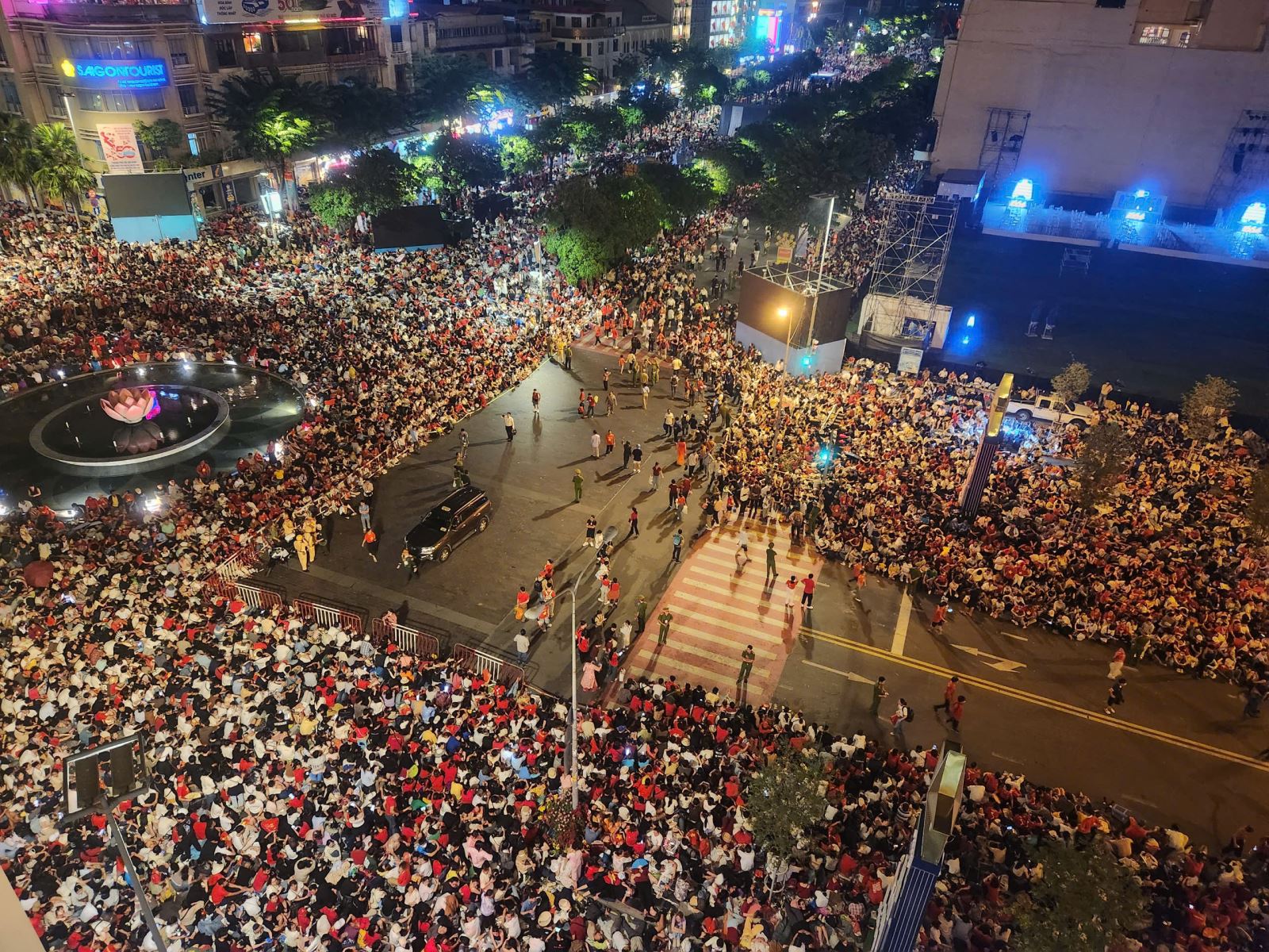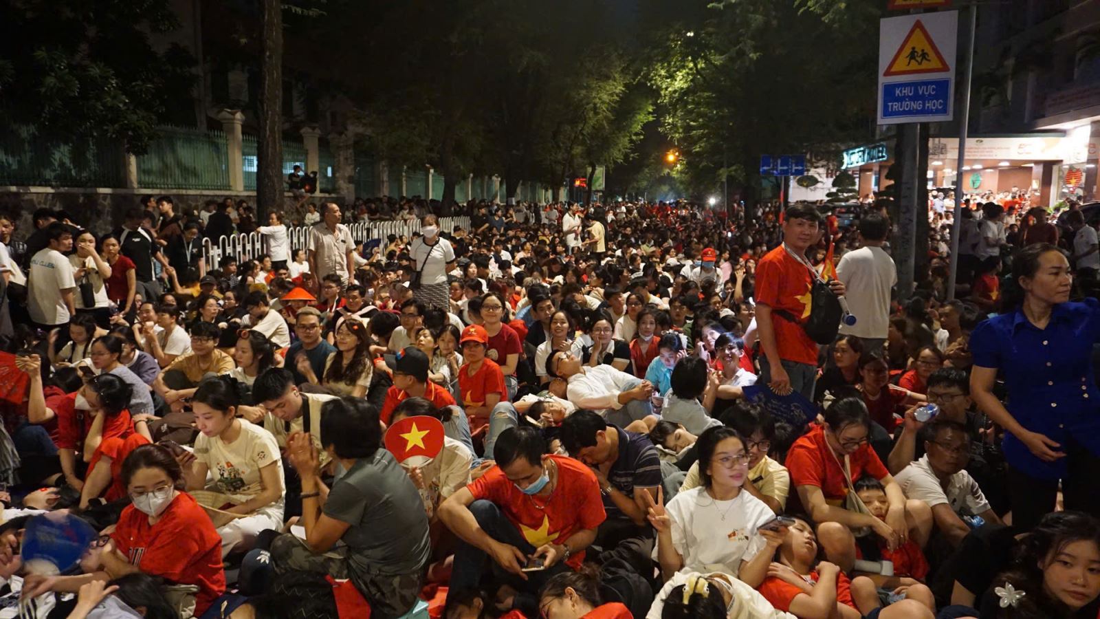 | Lượng người tập trung đông đúc trên đường Nguyễn Huệ - khu vực trước Tượng đài Bác để chờ xem lễ diễu binh, diễu hành. |