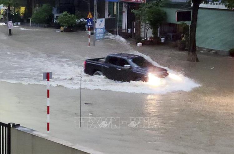 | Mưa lớn khiến nhiều tuyến đường ngập sâu trong nước tại Thái Nguyên ngày 21/6. |