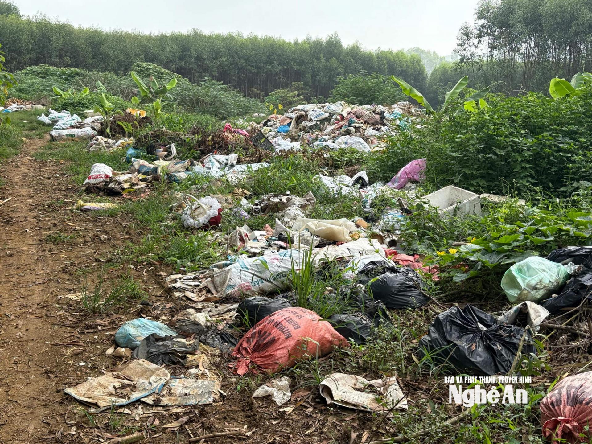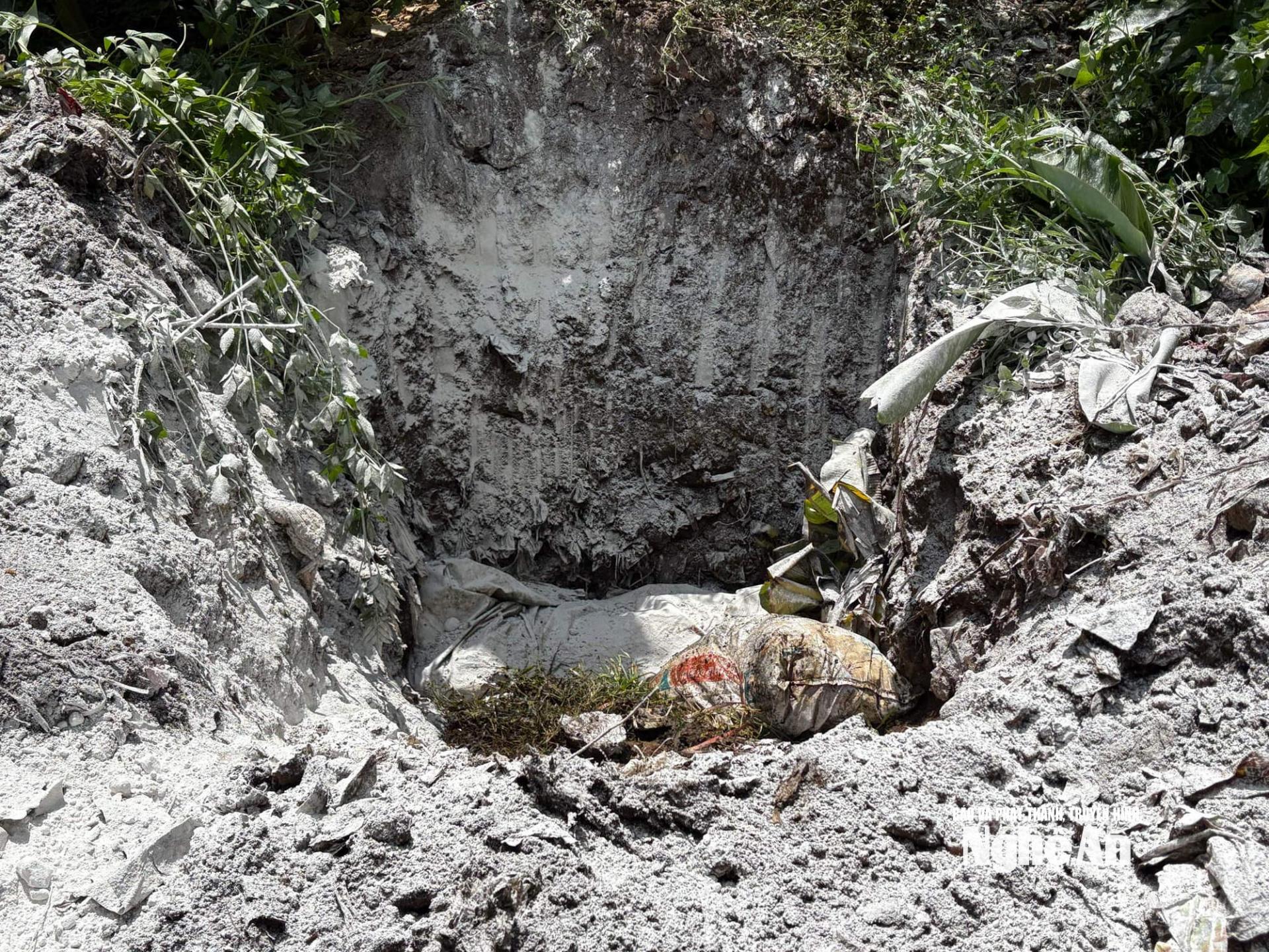 Có mặt tại bãi rác Bến Đan, xã Nghĩa Khánh, PV ghi nhận tình trạng xác lợn chết được đóng thành bì vứt quanh bãi rác. Nhiều xác lợn đã phân hủy gần hết, có xác lợn vừa mới được vứt. Tình trạng ô nhiễm nặng nề, mùi hôi thối bốc lên ảnh hưởng đến người dân đi làm đồng.