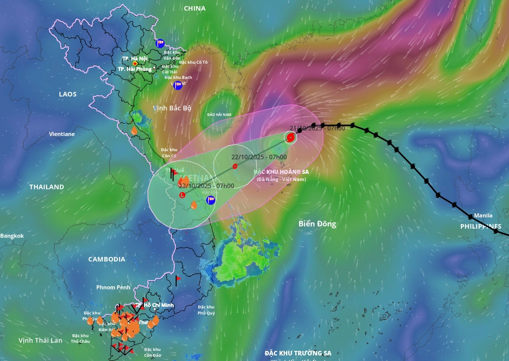 Dự báo lượng mưa từ trưa 22/10 đến hết đêm 23/10 ở Nam Quảng Trị đến Đà Nẵng từ 250-450mm, có nơi trên 700mm. Khu vực Hà Tĩnh, Bắc Quảng Trị (Quảng Bình cũ) và Quảng Ngãi mưa từ 100-250mm, có nơi trên 350mm.