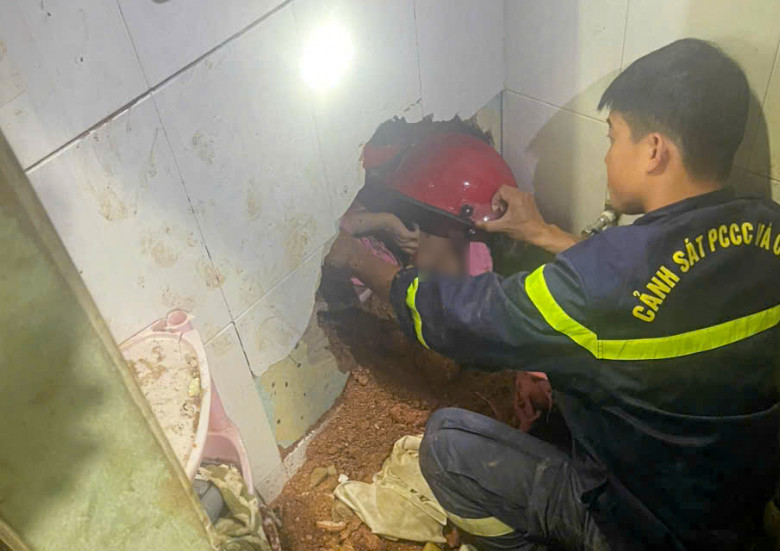 Lực lượng chức năng đang tiến hành đưa thi thể ra ngoài.