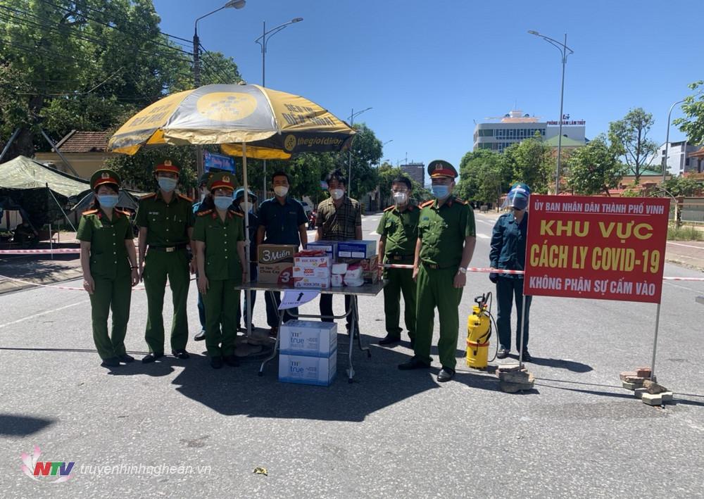 | Đoàn trao quà hỗ trọng TP Vinh. |