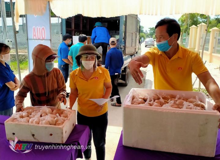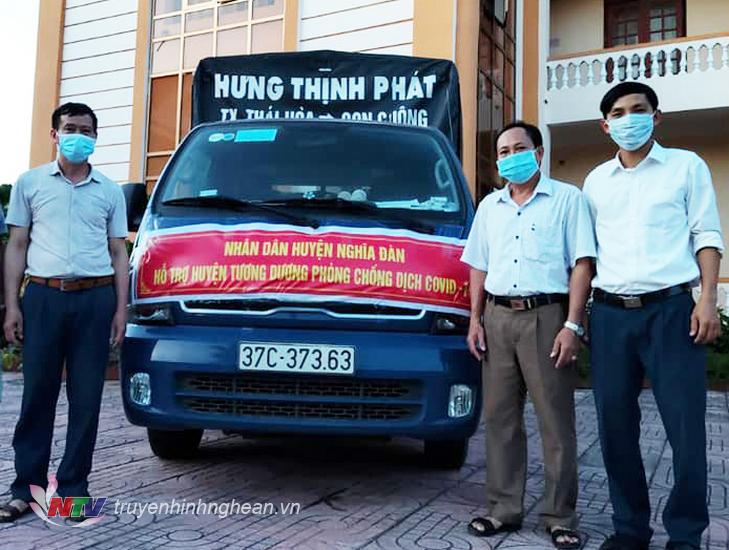 | Đoàn công tác Bộ Chỉ huy BDBP tỉnh Nghệ An trao hỗ trợ vật chất cho nhân dân xã Chiêu Lưu, huyện Kỳ Sơn chống dịch. |
