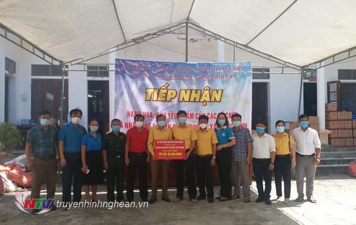 Tại điểm tiếp nhận ủng hộ của Ủy ban MTTQ huyện, Hội LHPN tỉnh đã trao tặng huyện Quỳnh Lưu 55 thùng nước rửa tay khô, tổng trị giá 93 triệu đồng. Nguồn kinh phí được trích từ Hội LHPN tỉnh.