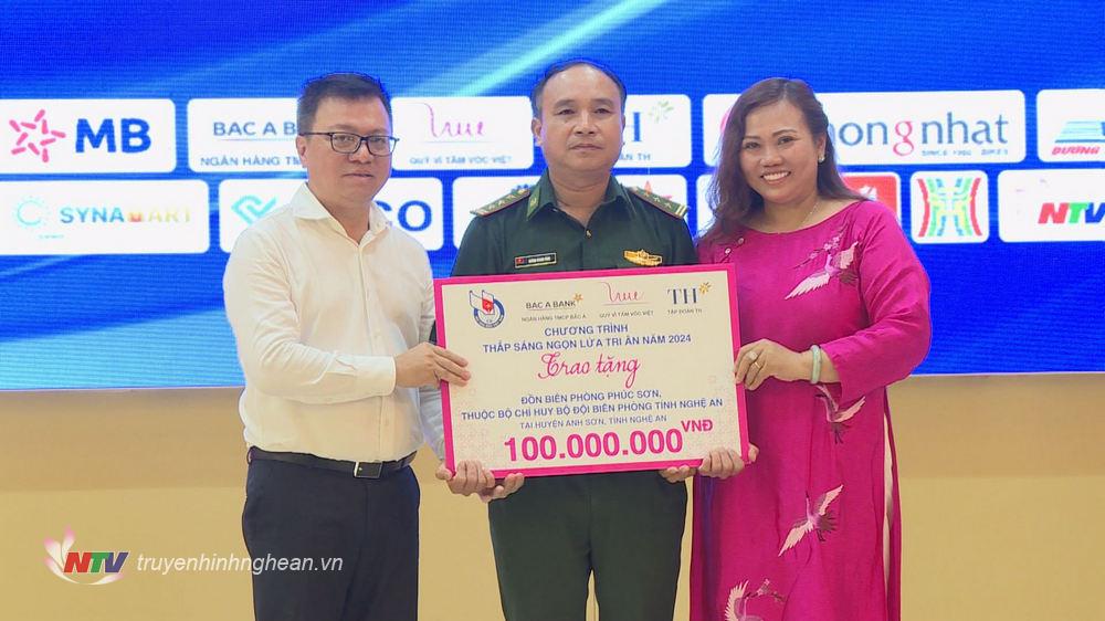| Trao kinh phí xây nhà ăn bán trú cho Trường mầm non Tây Sơn. |