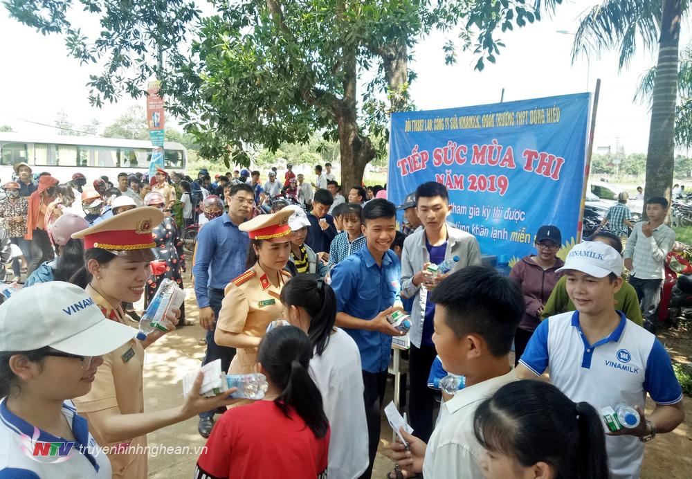 Cùng với hoạt động kỳ thi tốt nghiệp THPT Quốc gia, xét nguyện vọng ĐH, CĐ năm nay diễn ra trong thời tiết nắng nóng cao với nền nhiệt ngoài trời từ 39-40 độ C. Thế nhưng, đội thanh niên tình nguyện đã kêu gọi các nhà hảo tâm ủng hộ bằng tiền mặt, bánh mì, nước uống phát miễn phí cho các thí sinh nhằm hỗ trợ vật chất và tinh thần cho các thí sinh đạt kết quả cao.