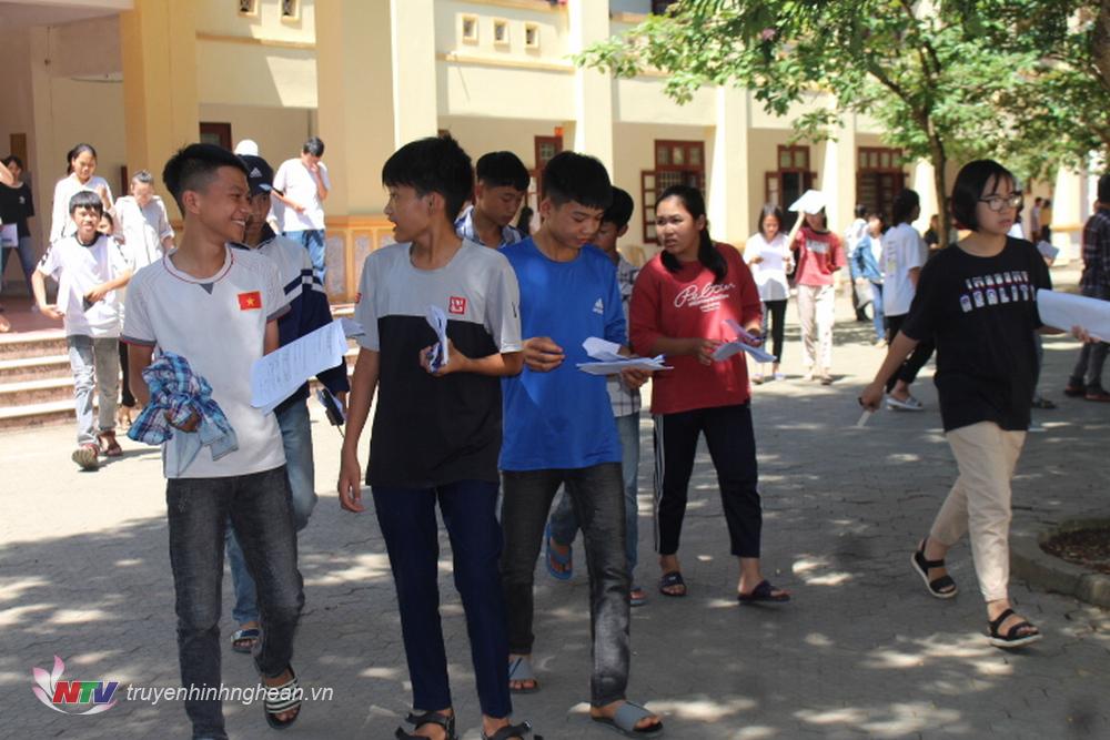 * Buổi thi đầu tiên kỳ thi THPT Quốc gia 2019 tại điểm thi trường THPT Con Cuông: nhiều thí sinh nhận định đề văn quen thuộc nhưng khó đạt điểm cao.