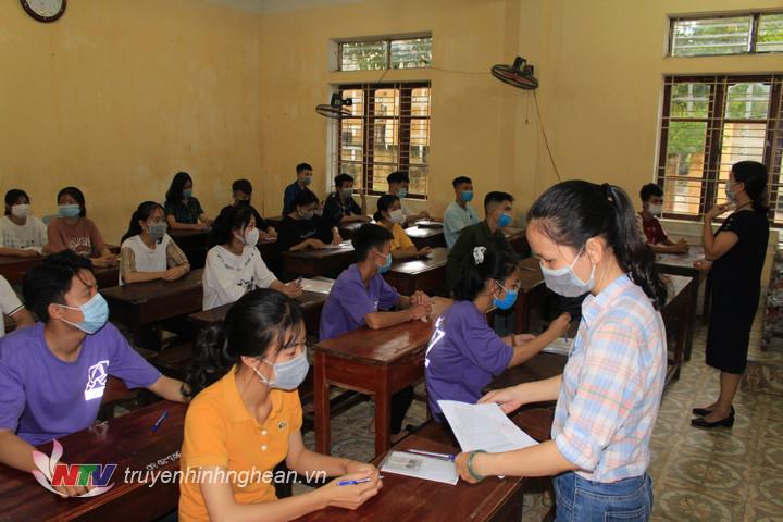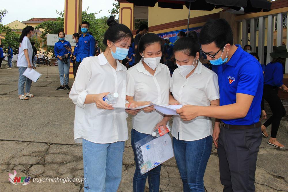 | Học sinh Bắc Giang trước giờ vào phòng thi, sáng 7/7. |