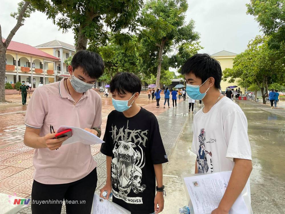 | Các thi sinh Đô Lương thảo luận kết quả sau buổi thi. |