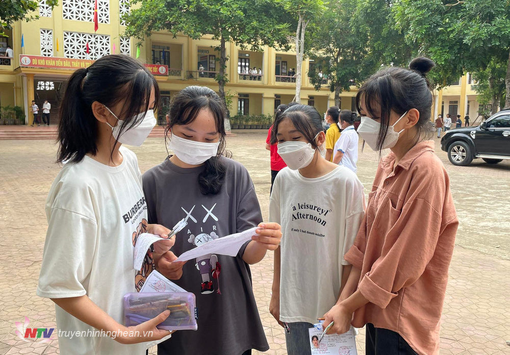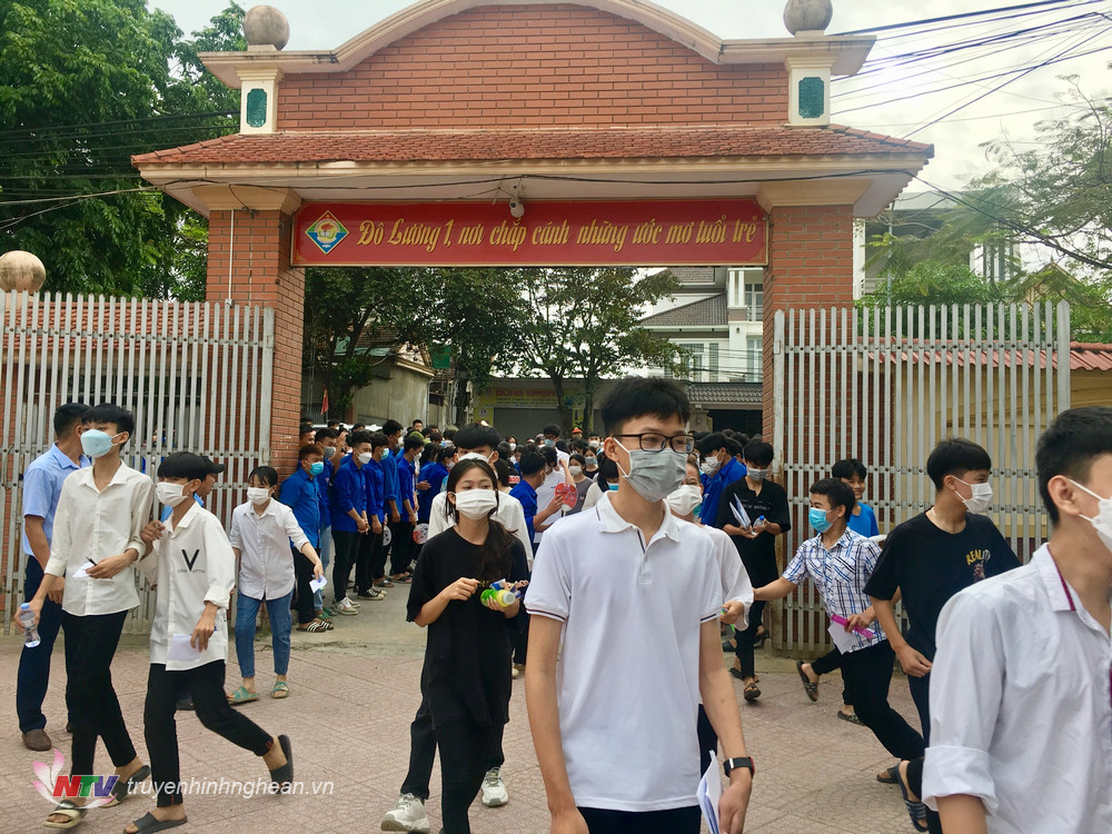 *Tại Con Cuông, sau 120 phút làm bài, các thí sinh rời phòng thi trong sự lo lắng và cho rằng, đề thi tương đối khó, có sự phân hóa rõ rệt.