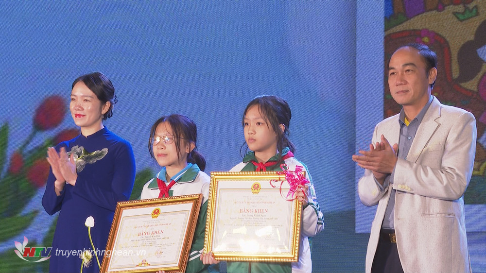 | Học sinh trường THCS Thanh Thủy, huyện Thanh Chương tặng quà cho cán bộ, chiến sĩ Đồn Biên phòng cửa khẩu Thanh Thủy. |