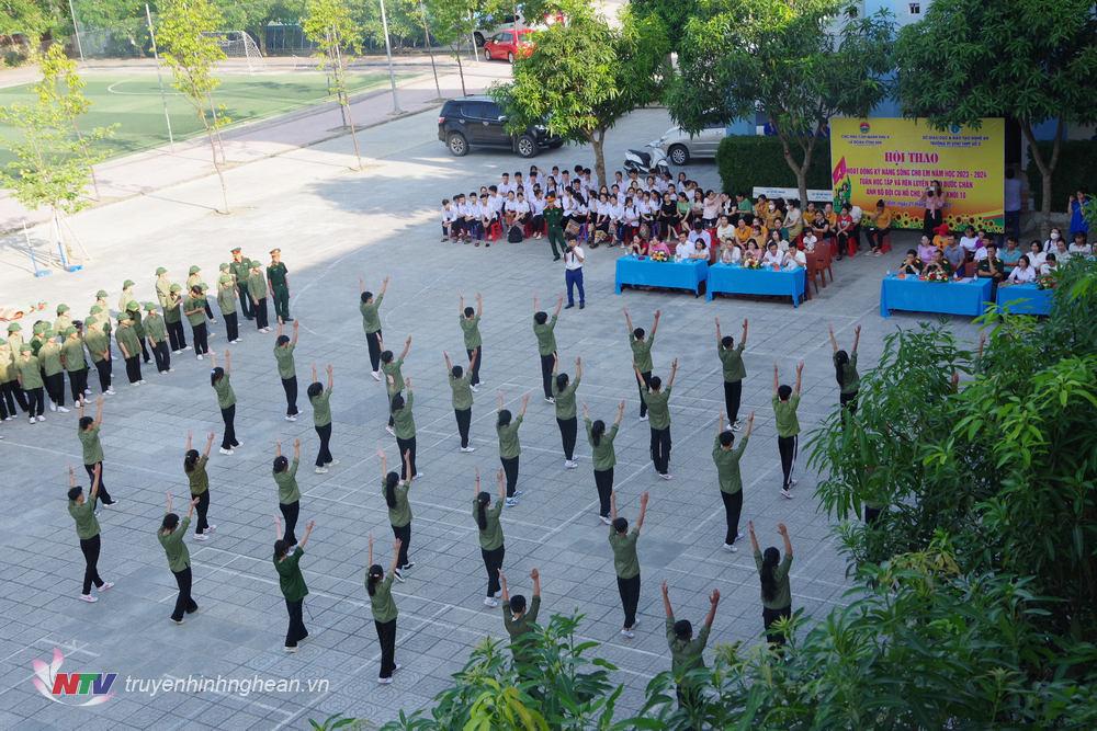 | Lễ khai giảng ở Nam Đàn đã diễn ra trong bầu không khí trang trọng, ngắn gọn, khoa học tạo niềm vui, phấn khởi động viên các thầy giáo, cô giáo, và hơn 34.500 học sinh trên địa bàn đón chào năm học mới 2023 - 2024. Ảnh: Thuý Tình |