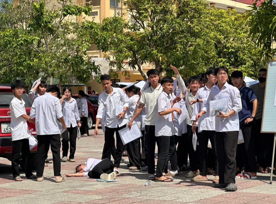 | Thí sinh trao đổi đề sau khi kết thúc môn Toán. |