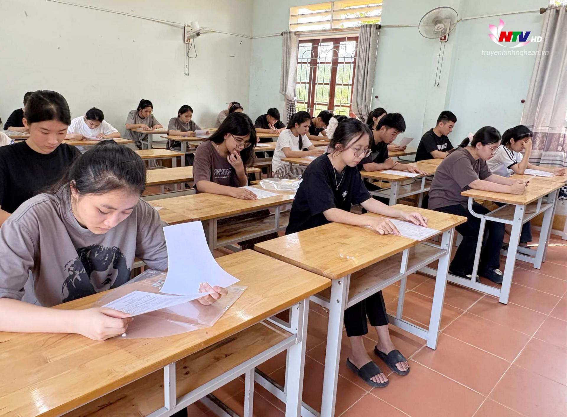 Thí sinh Nguyễn Phương Thảo, Trường THPT Tây Hiếu (TX Thái Hoà) chia sẻ: Đọc đề toán bản thân khá lo lắng khi thấy có phần khó hơn so với những đề minh họa và đề thi được thầy cô cho ôn luyện. “Từ câu 1 đến câu 12 em làm khá dễ dàng. Từ câu 13 trở đi là “khó nhằn” với em. Nhiều câu em hy vọng vào may mắn", Thảo lo lắng nói thêm.