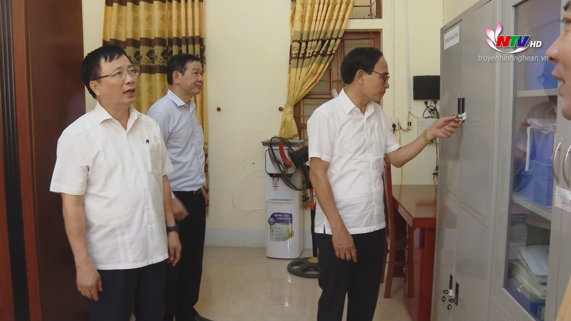 | Phó Chủ tịch UBND tỉnh Bùi Đình Long kiểm tra Kiểm tra khu vực lưu trữ đề thi, bài thi. tại các điểm thi huyện Thanh Chương. |