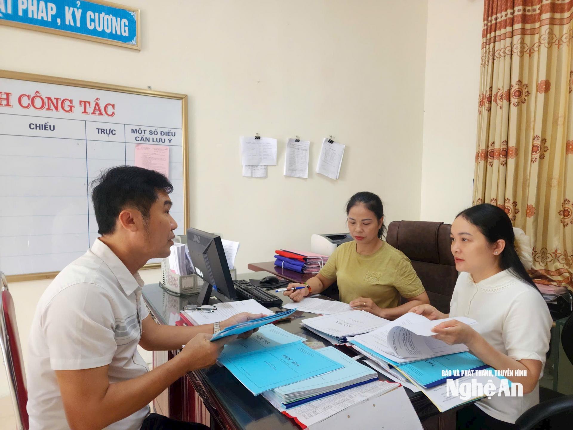 | Giáo viên Trường THPT Mai Hắc Đế kiểm tra hồ sơ xét tuyển của các học sinh. Ảnh: Mỹ Hà |
