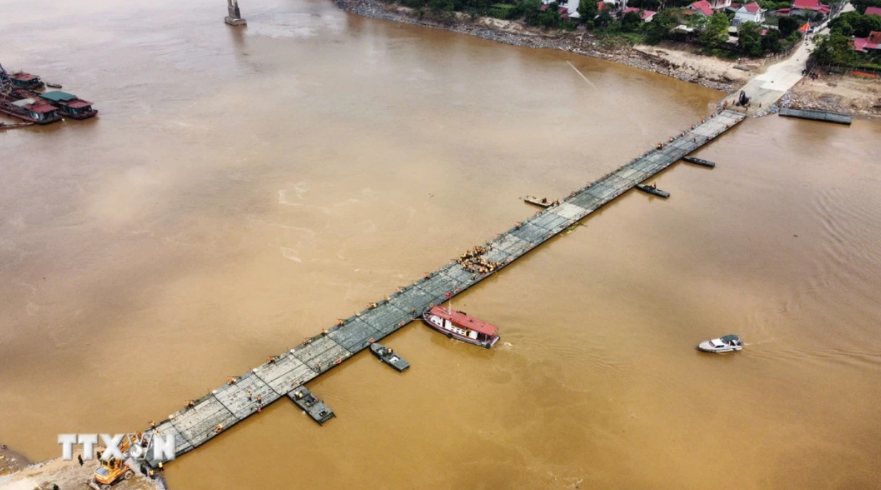 | Dòng phương tiện qua cầu sau lệnh thông xe chính thức lúc 6 giờ ngày 30/9. Ảnh: Hoàng Hiếu/TTXVN |