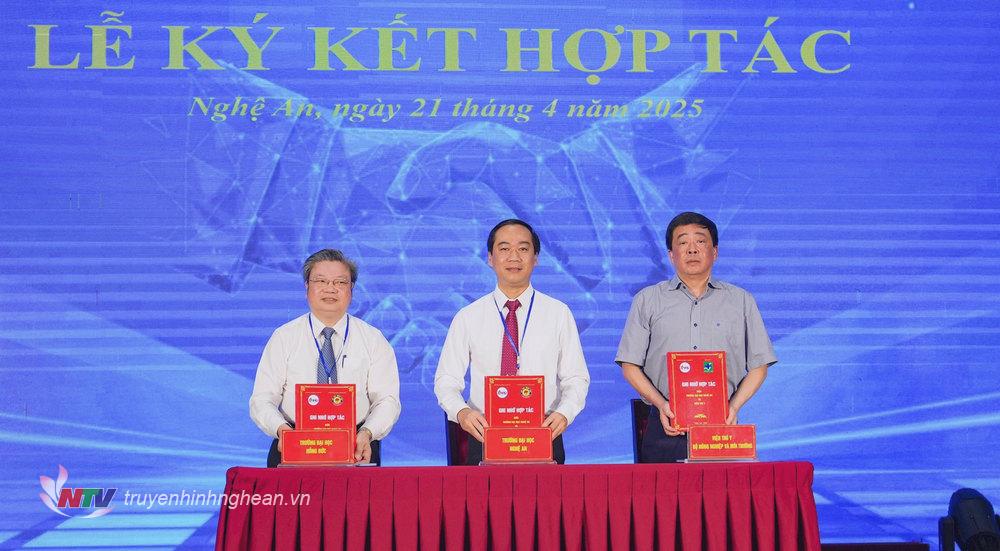 | Lễ ký kết hợp tác giữa Đại học Nghệ An - Đại học Hồng Đức và Viện Thú y. |