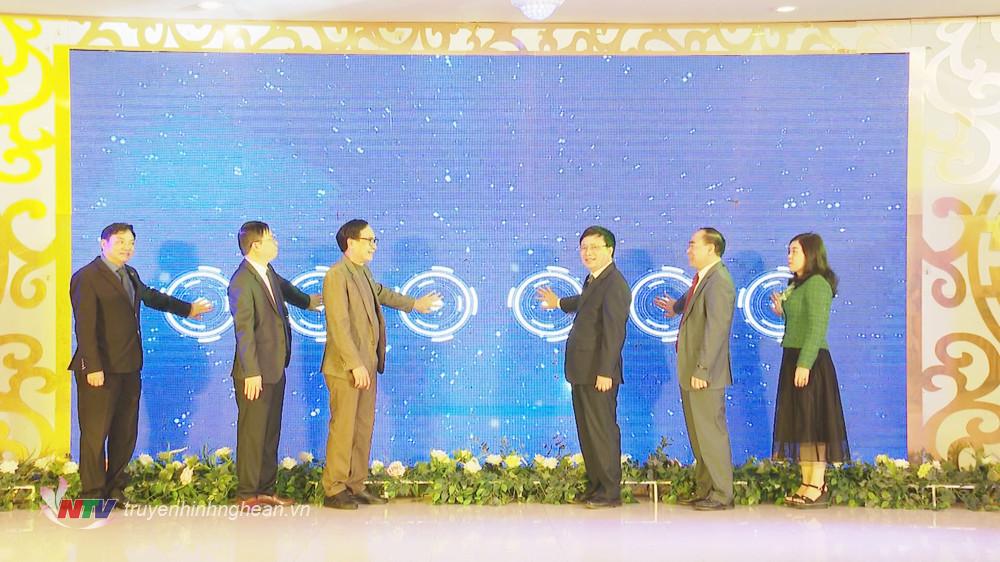 | Phó Chủ tịch UBND tỉnh Bùi Thanh An tặng hoa chúc mừng Tổng công ty CP Vật tư nông nghiệp Nghệ An ra quấn sản xuất ngày đầu năm mới. |