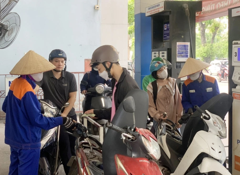 | Giá xăng trong nước được điều chỉnh tăng. |