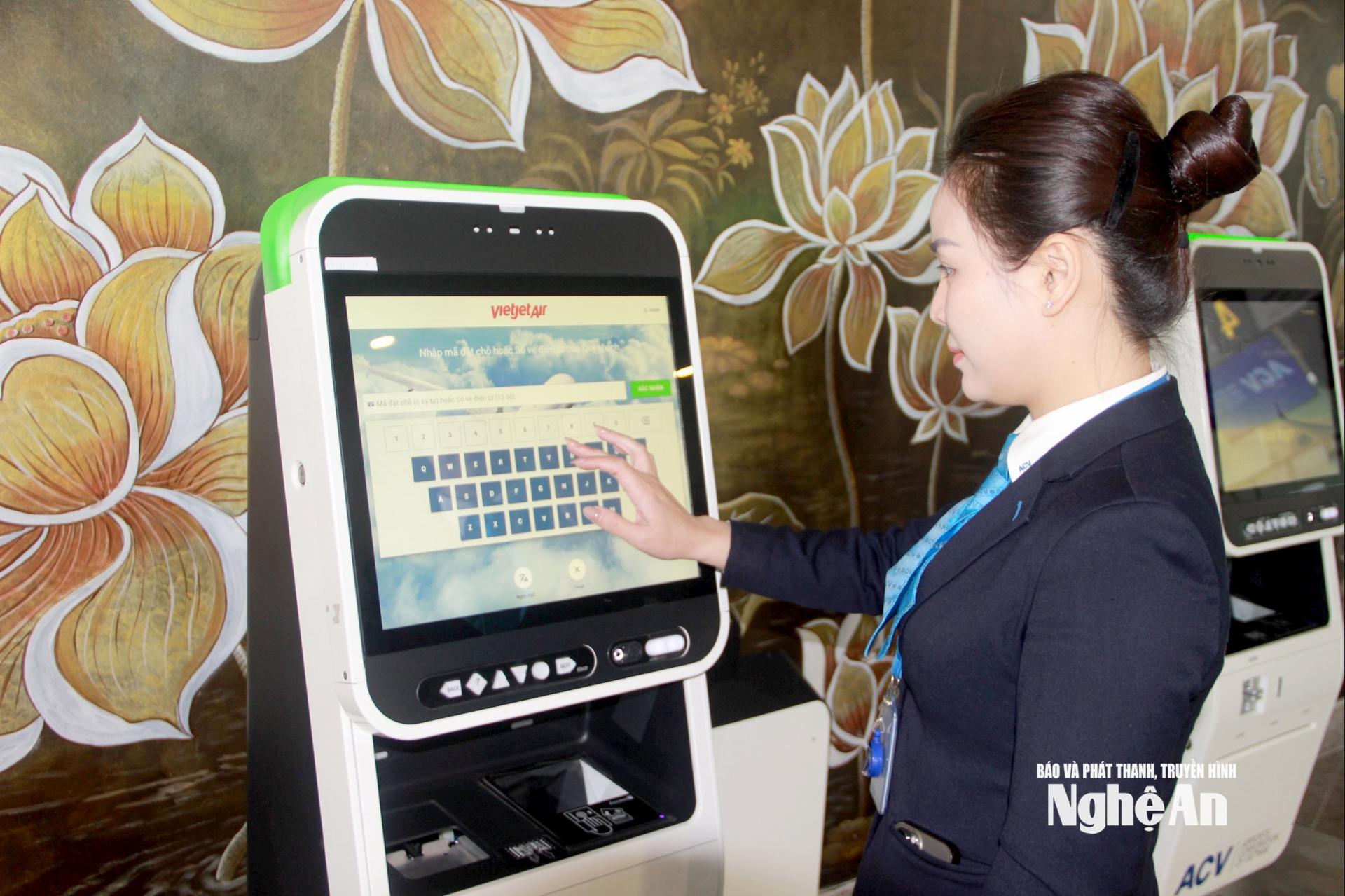 | Máy check-in tự động được lắp đặt tại sân bay có màn hình cảm ứng, máy quét mã vạch, cho phép hành khách tự hoàn thành thủ tục bay nhanh chóng, tiết kiệm thời gian chờ đợi, đặc biệt hữu ích cho hành khách có ít hành lý. Ảnh: Q.A |