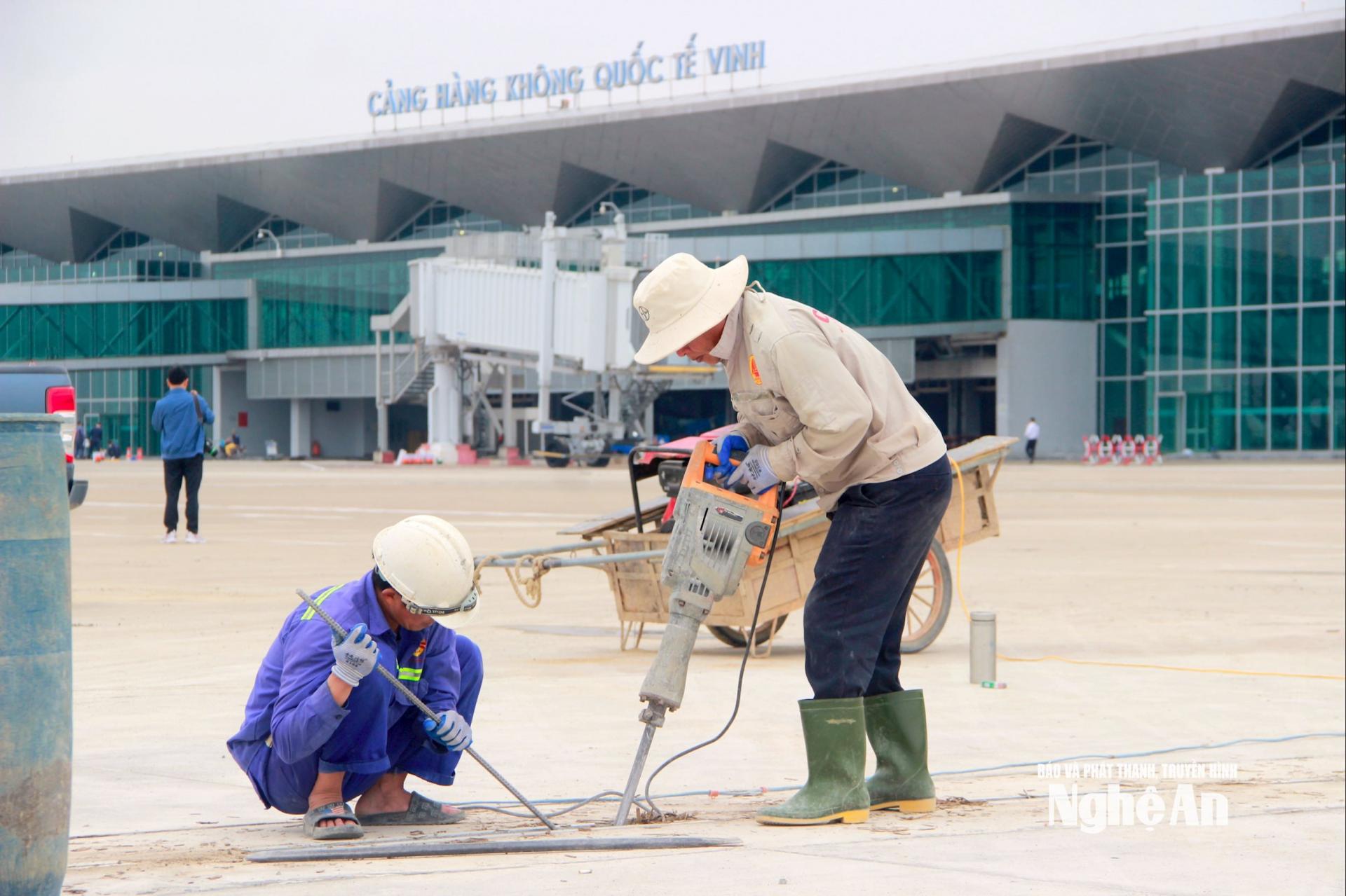 | Trên công trường, các công nhân vẫn đang gấp rút thi công các hạng mục còn chưa hoàn thiện của dự án nâng cấp đường băng và mở rộng, cải tạo sân đỗ. Ảnh: Q.A |