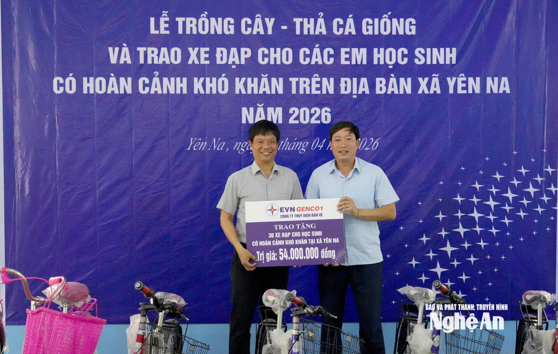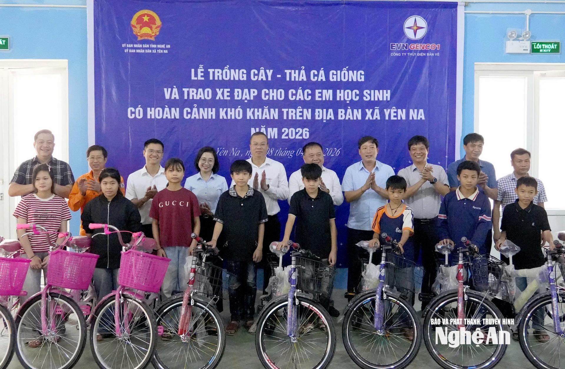Dịp này, Công ty Thuỷ điện Bản Vẽ cũng đã trao tặng 30 chiếc xe đạp, tổng trị giá 54 triệu đồng cho các em học sinh có hoàn cảnh khó khăn trên địa bàn xã Yên Na. Những chiếc xe đạp mới là món quà thiết thực, giúp các em có thêm điều kiện đến trường thuận lợi, tiếp tục nuôi dưỡng ước mơ học tập.