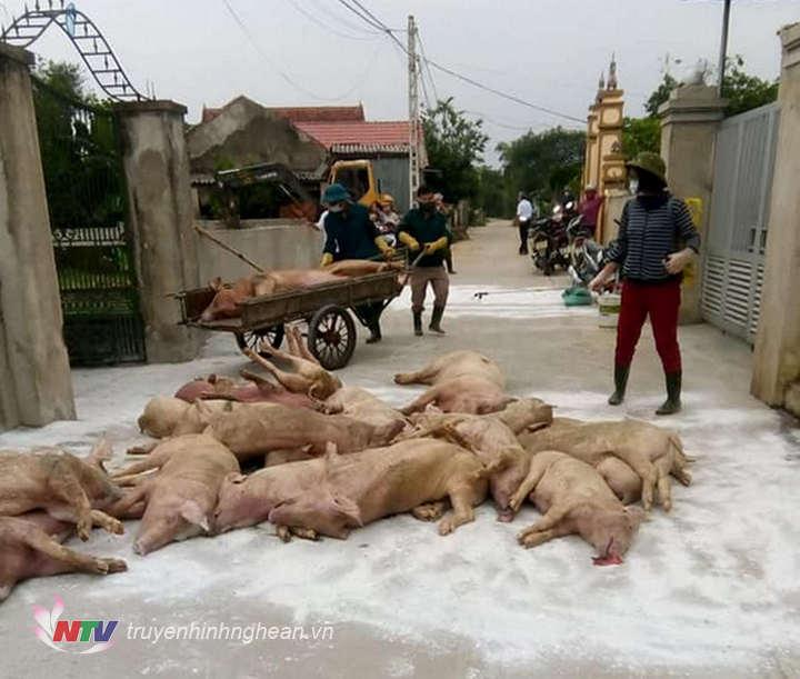 | Tiêu huỷ lợn nhiễm bệnh. |