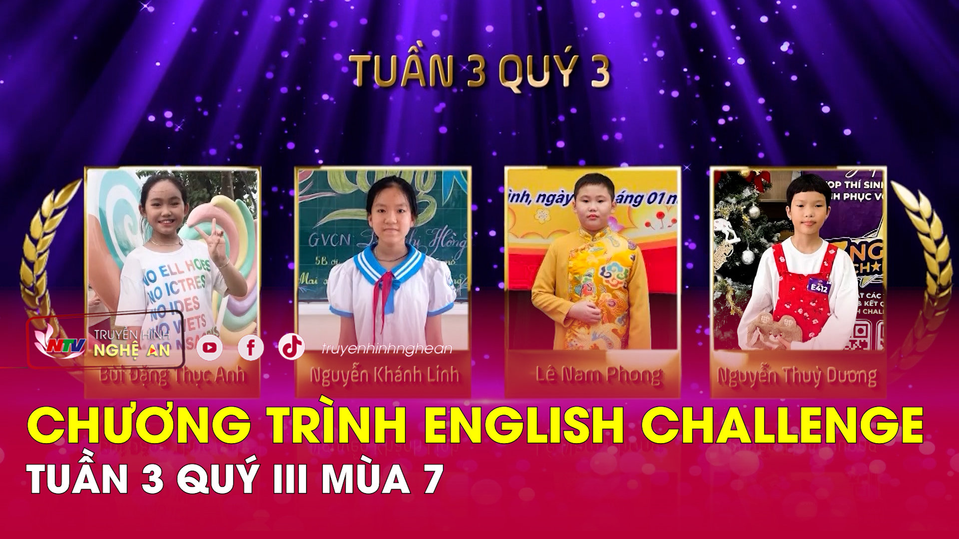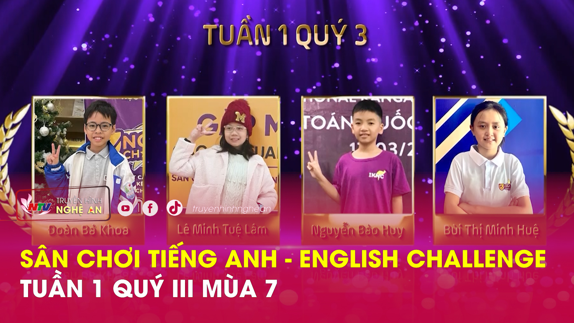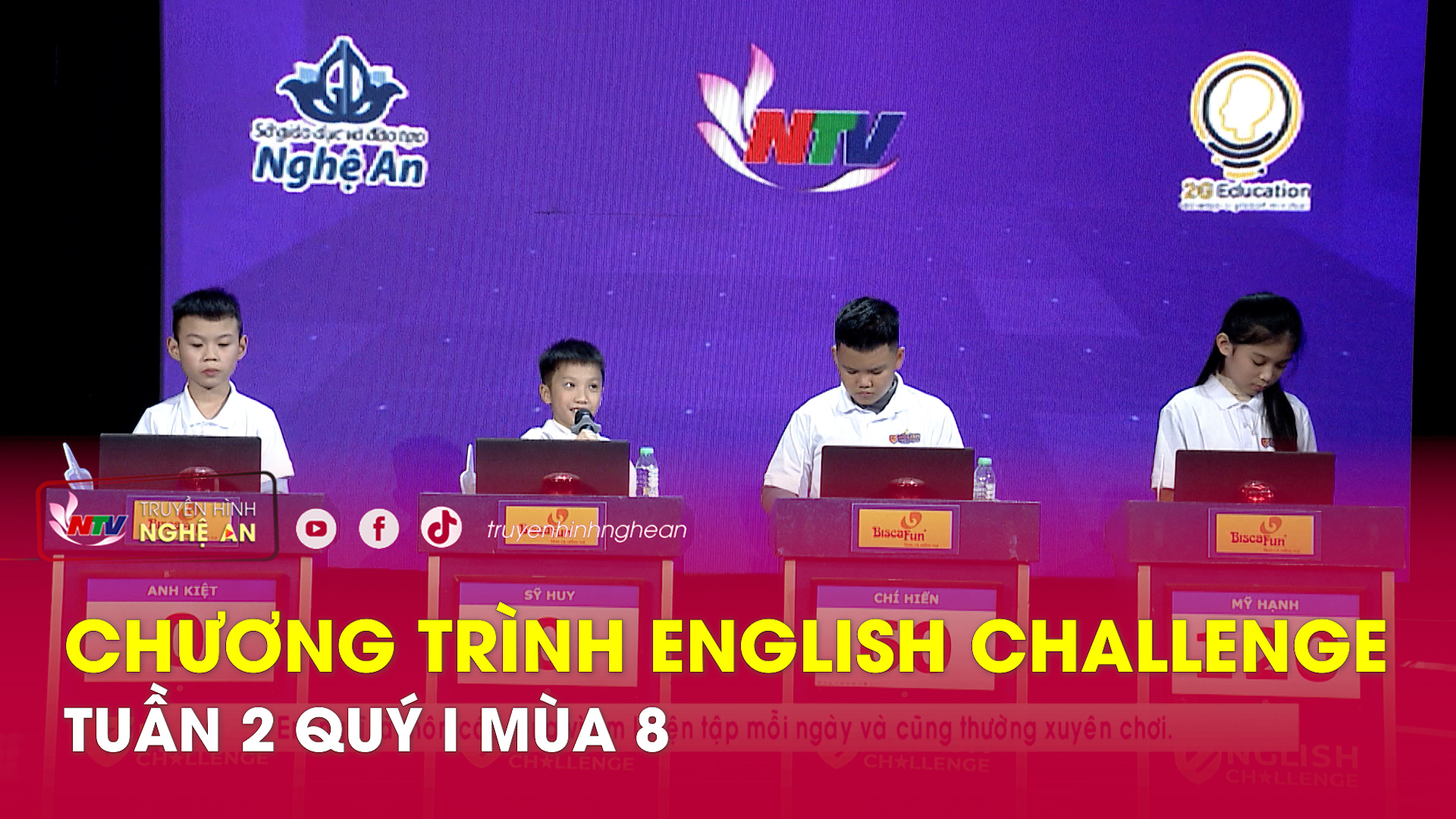 - Lê Anh Kiệt, Lớp 4D, Trường Tiểu học và Trung học cơ sở Thực hành sư phạm Nghệ An. Kính mời quý vị khán giả và các em học sinh theo dõi chương trình.