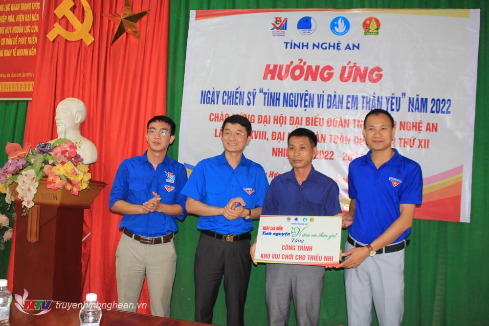 Dịp này, Đoàn khối CCQ tỉnh đã trao tặng trường 1 Thư viện đọc sách; Chi đoàn Viện KSND tỉnh trao tặng 700 đầu sách các loại; Chi đoàn Đài PTTH Nghệ An và Chi đoàn Đài PTTH Quảng Trị trao tặng 1 bộ trống Đội cho nhà trường. Tổng giá trị các phần quà 36,5 triệu đồng.