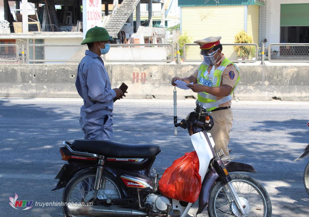 | Lực lượng chức năng kiểm tra lý do người đi đường. |
