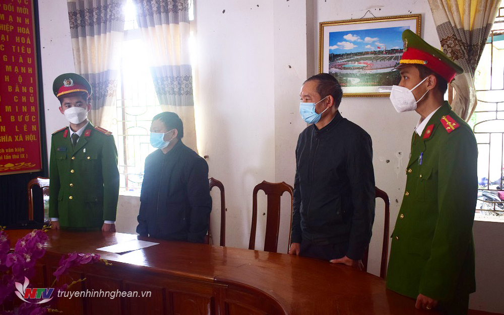 | Công an xã Nghĩa Khánh lấy lời khai của đối tượng Đào Thị Dung |