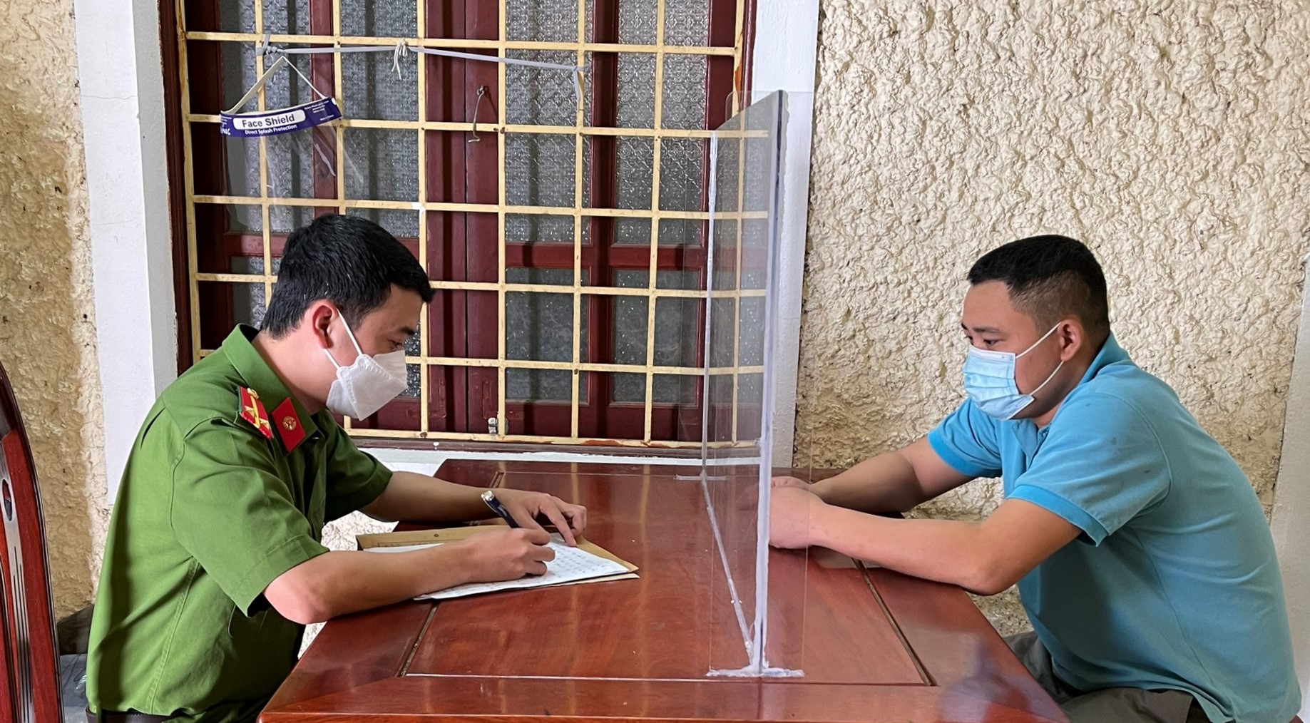 | Công an huyện Diễn Châu lấy lời khai đối tượng Võ Hồng Chinh. |