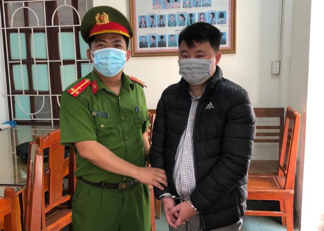 | Hai đối tượng Trương Văn Sơn (trái) và Hoàng Văn Thọ tại cơ quan công an. |